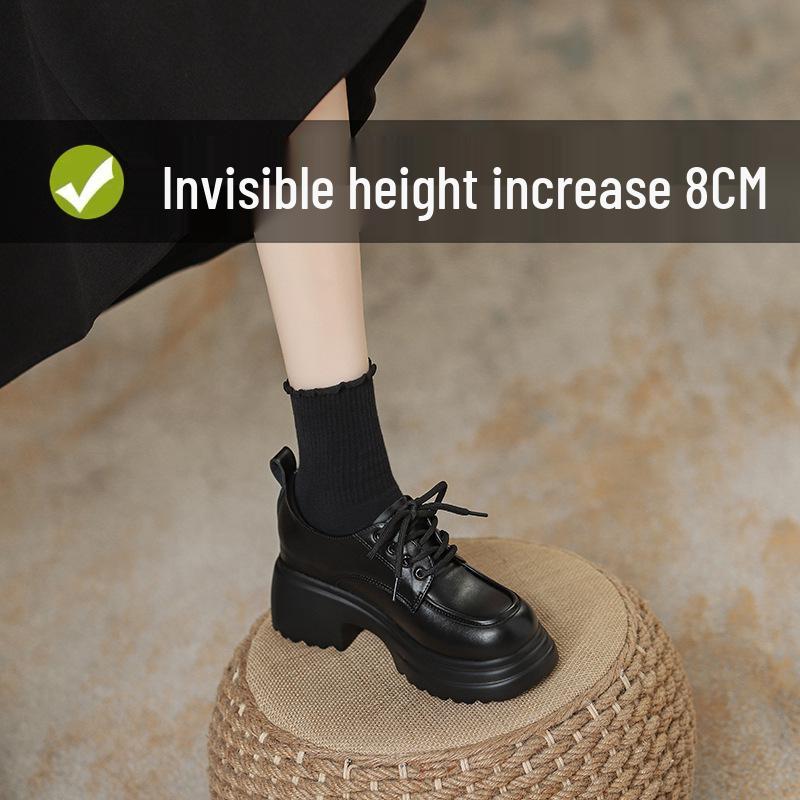 Women's Platform Lace-Up Loafers - Spring 2024, Hidden Heel 8.5CM, Chunky and Thick Sole.