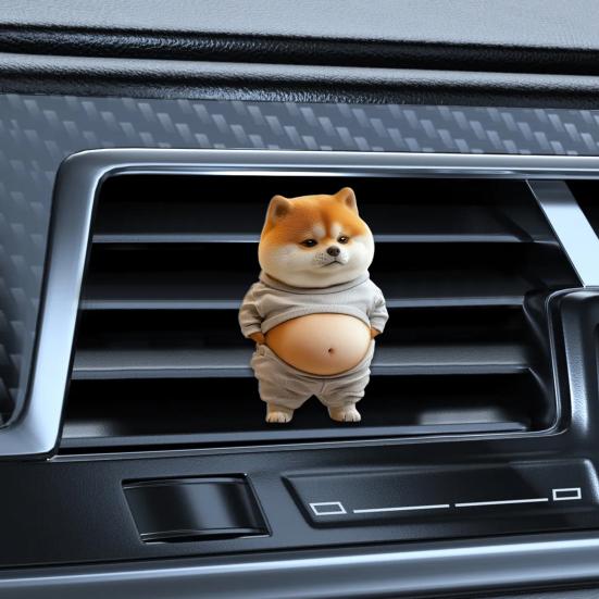Bu sevimli göbekli köpekli araba havalandırma klipsi ile araba iç mekanınıza eğlenceli bir dokunuş katın. Aracınızın havalandırma deliğine zarar vermeden kolayca takılacak şekilde tasarlanmıştır, engebeli sürüşlerde bile hafif ve sabit kalır..