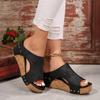 Women's Plus Size Roman Peep Toe Platform Sandals, Hook-and-Loop Chunky Heel Casual Slides