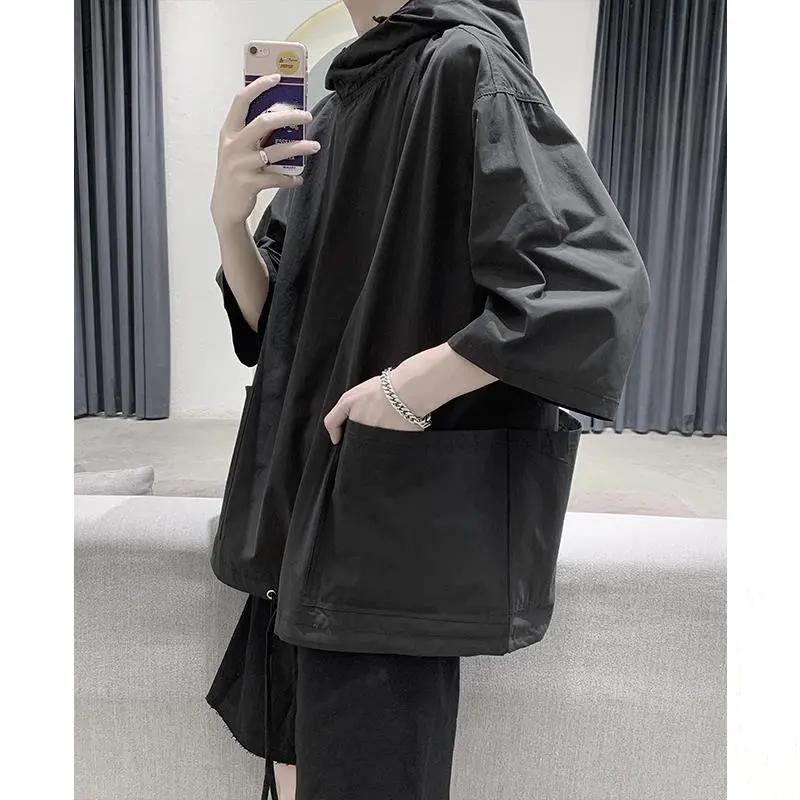 Men's Summer Casual Short-Sleeve T-Shirt Minimalist Hooded Korean-Style Workwear Top