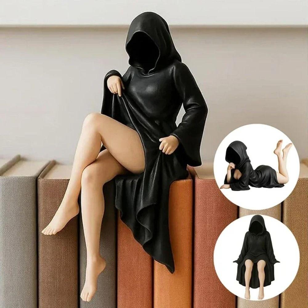 PLA Gothic Black Robe Queen Figure Gothic Style Bookshelf Sculpture Halloween Decor