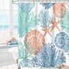 GAEBeach Ocean Themed Shower Curtain, Teal Blue Nautical Coastal Decor, Tropical Fabric Set with Hooks