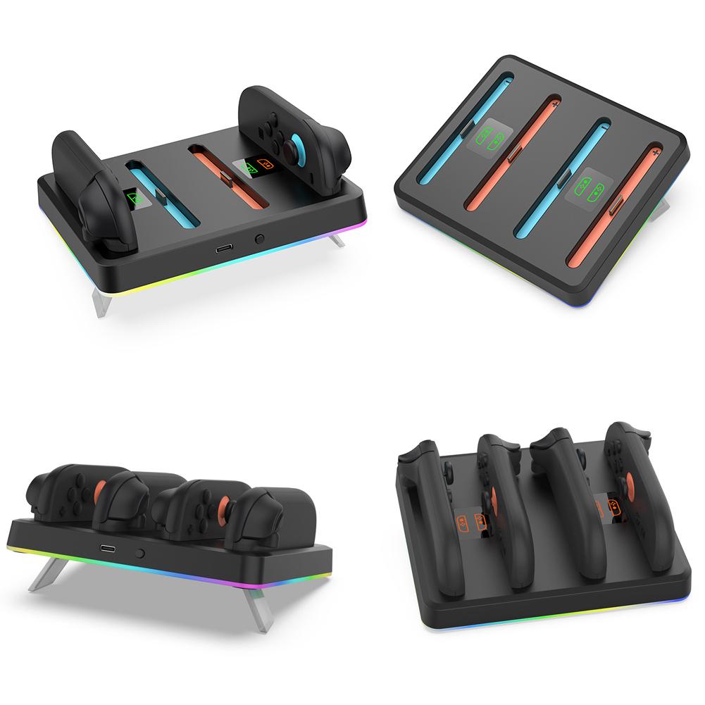 Controller Charger 4 in 1 Magnetic Controller Charger Stand Station with RGB Lights Magnetic Charger Station for Switch2