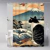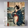 Japanese Cat Classic Vintage 1pc Pattern Shower Curtain Plus Hooks Waterproof Machine Washable Polyester Fabric Abstract