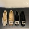Fashion Women's Flat Cotton Boots Winter New Square Head Shallow Mouth Crystal Buckle Soft Sole Anti-slip Wear-resistant Low-top Shoes