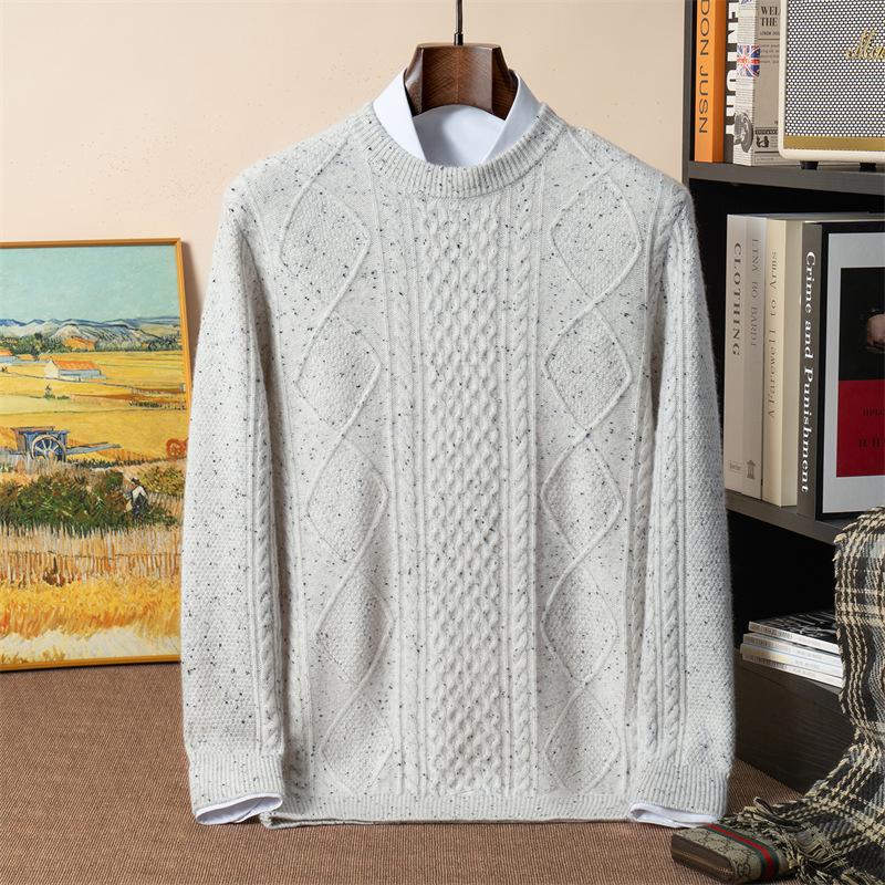 Crew neck solid color seven-needle double-strand thickened idea yarn cashmere sweater men's knitted sweater loose jumper