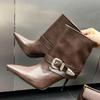Fashion Eilyken Designer Belt Buckle Pleated Women Ankle Boots Autumn Winter Pointed Toe Shoes Sexy Thin Heels Zapatos De Mujer