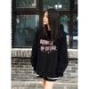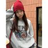 Crew neck sweater women's velvet outer wear graffiti cat personalized printing loose women's sweater