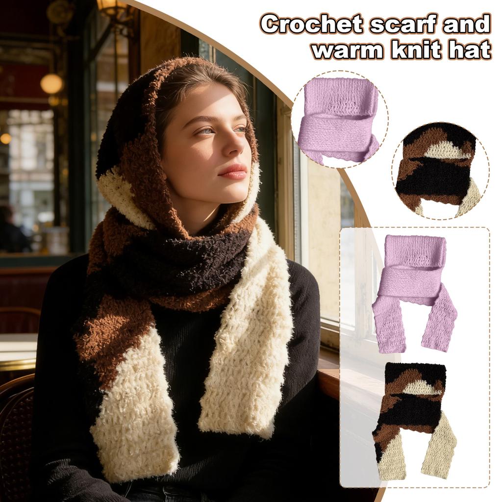 Three-color Crochet Scarf And Warm Knitted Hat