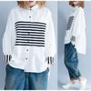 Moda Üst Düzey Çizgili Dikişli Sahte İki Parça Kadın Gömleği Sonbahar Yeni Stil Bol Hırka Üst