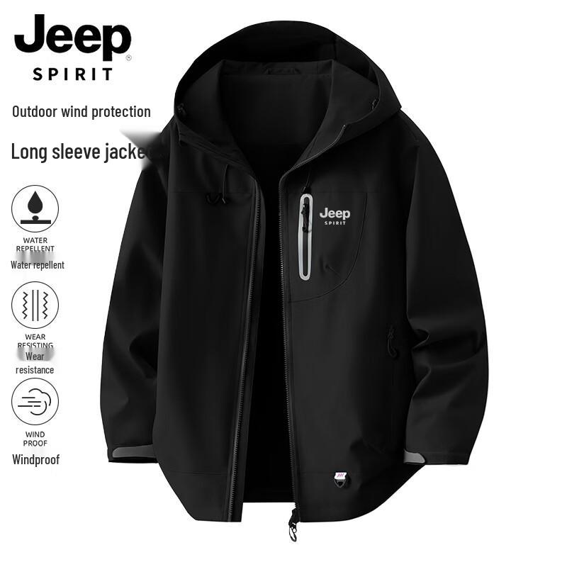 JEEP SPIRIT Men's Spring Windproof Waterproof Hooded Jacket
