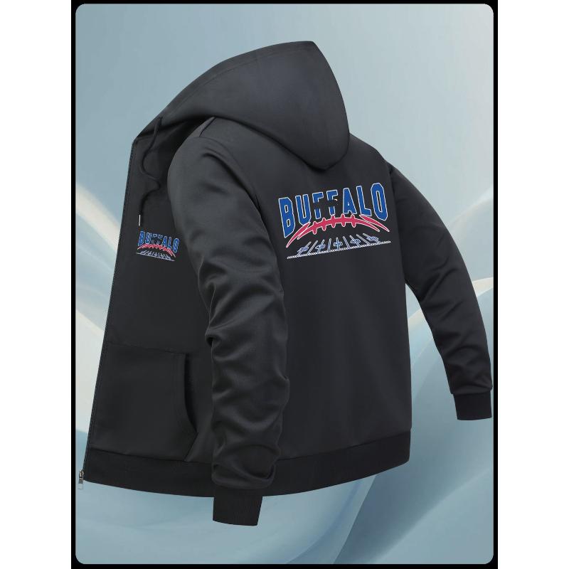 Warm Hooded Coat for Men Drawstring Hood Thickened Lining Cozy Warm Fall Winter Streetwear