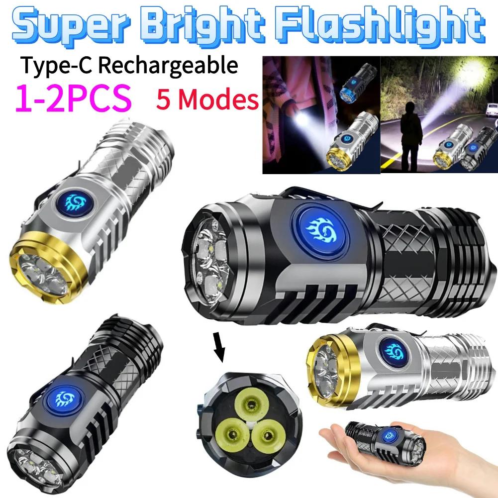 Type-C Rechargeable Adjustable Brightness Flash Light 5 Light Mode Waterproof Flashlight Super Bright Flashlight Pocket Light Small LED Flashlight for Emergency Job Site Lighting for Outdoor Emergency