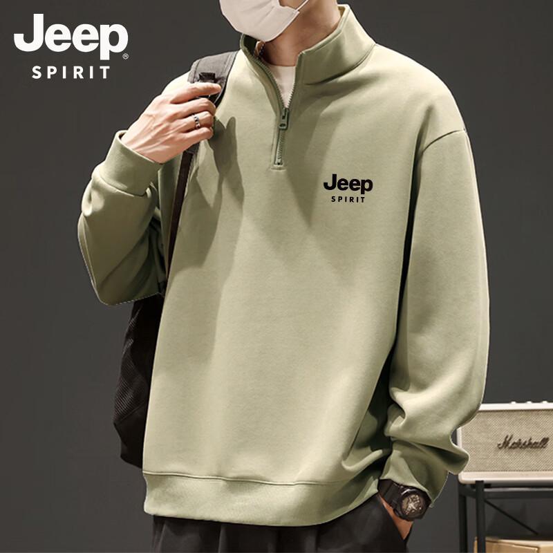 JEEP SPIRIT Men's Stand Collar Half-Zip Printed Pullover