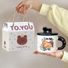 Polka dot animal cat mug with lid spoon gift box ceramic cup household water cup female cute office cup