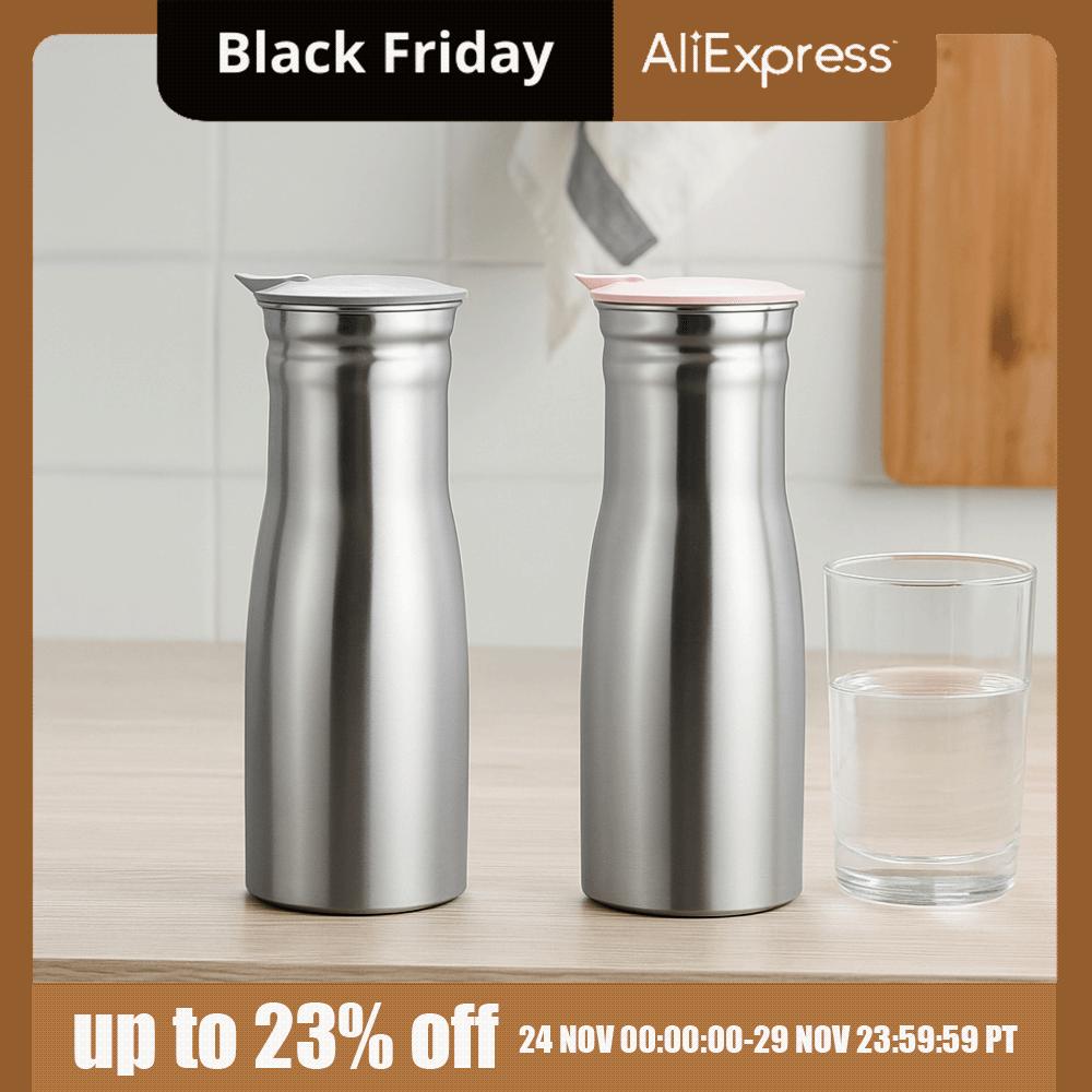Simple 1L Stainless Steel Cold Kettle Leakproof with Sealed Lid Cold Water Jug Large Capacity Fruit Juice Pot Camping