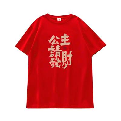 Loose Oversize Red T-shirt Short Sleeve Pullover Blouses Tops Chinese Style T Shirt Couple
