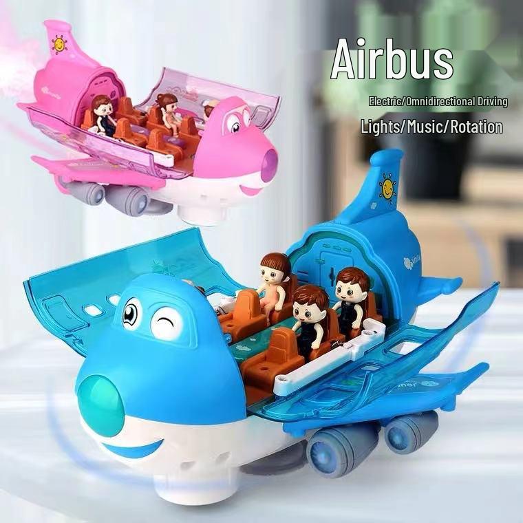 Electric Q-Cute Passenger Airplane Toy with Music & Lights - 360° Rotating Children's Car