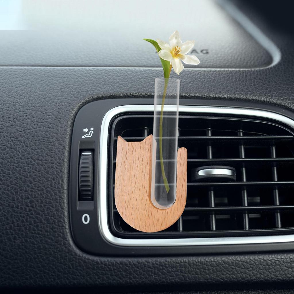 Car Vent Plant Holder Car Vase Vent Clip Propagation Plant Holder Wooden Automotive Aesthetic Interior Decoration For Sedan