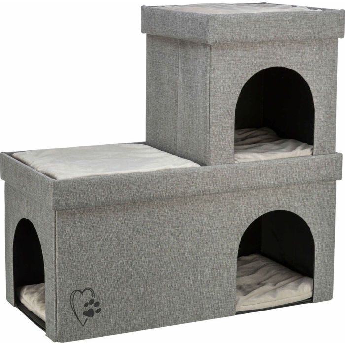 Abri pour chat - TRIXIE - Kimy - 2 étages - Gris - Intérieur - Douillet