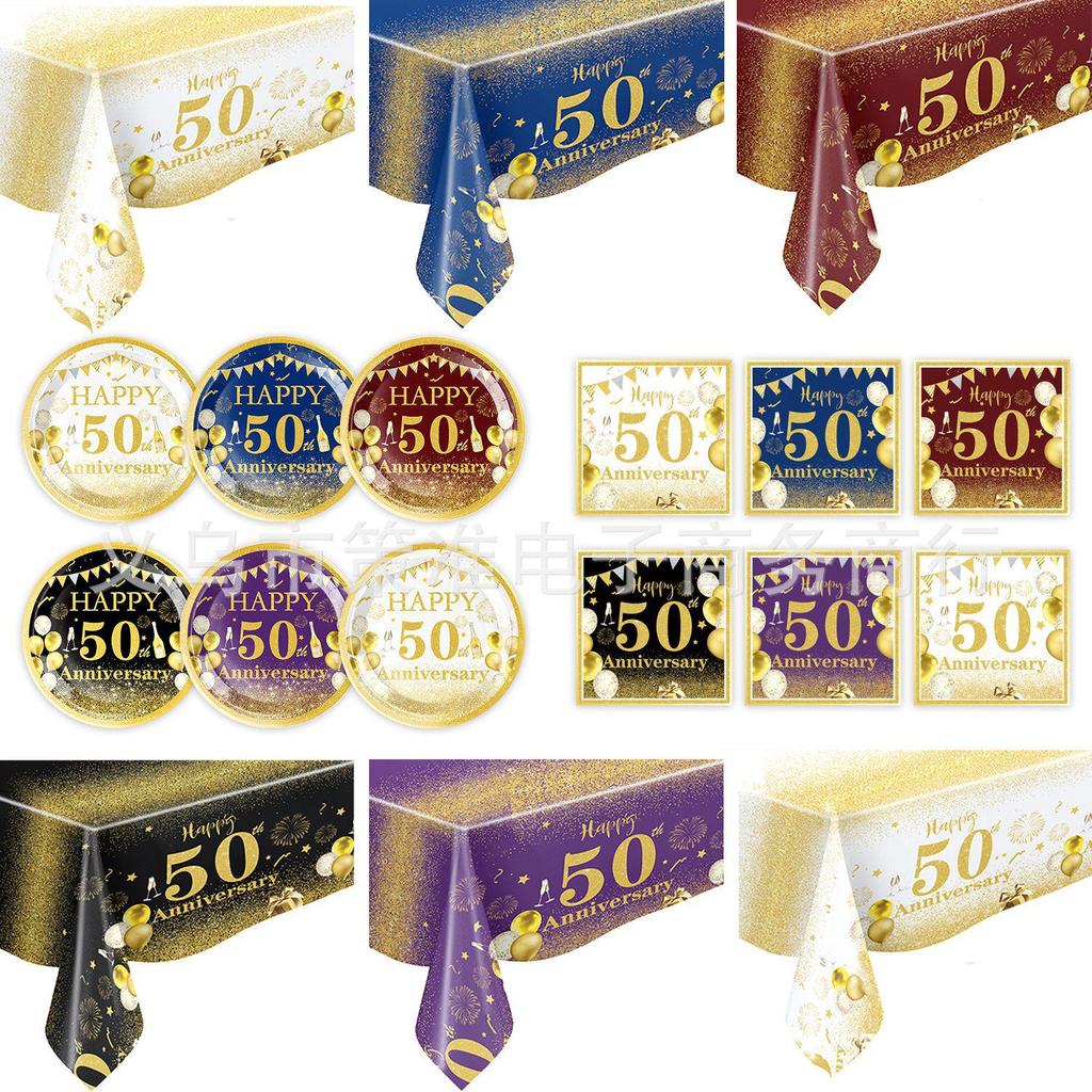 50th Birthday Party Disposable Tableware Set: Plates, Cups, Napkins, Tablecloth, Cutlery Supplies.