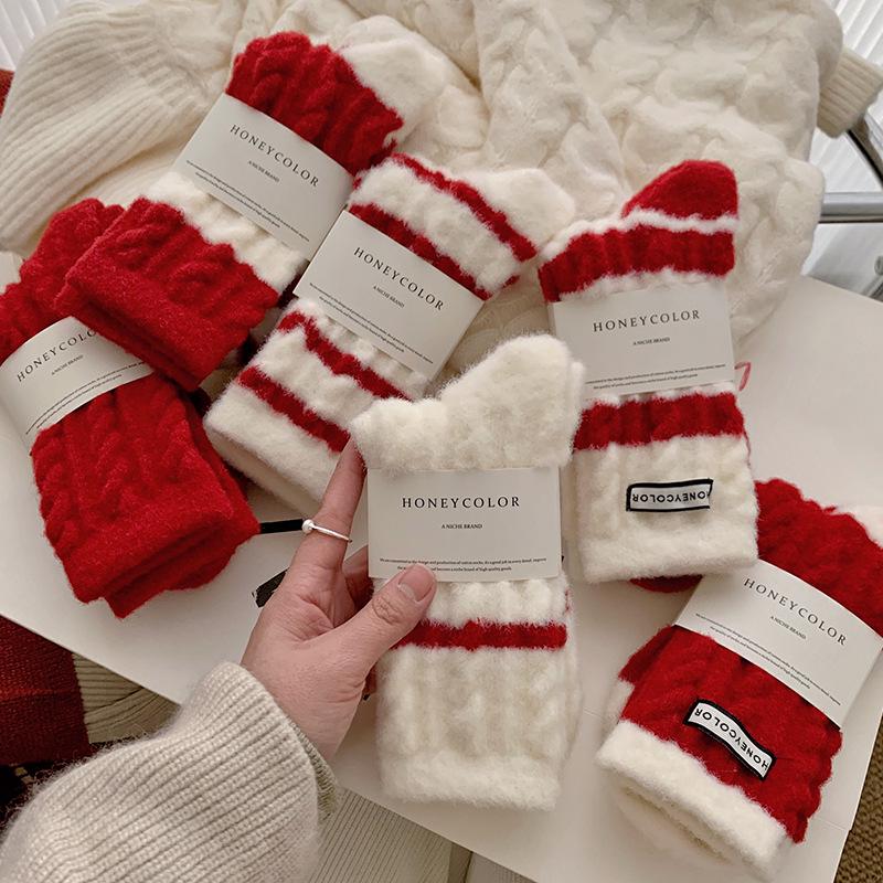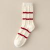 Women's Striped Red Mid-Calf Socks: Thick Warm Mink Velvet for Autumn & Winter
