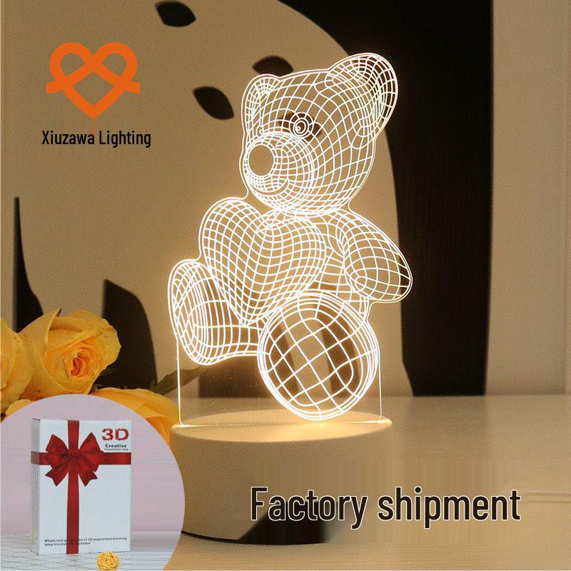 3D Acrylic Heart Bear Night Light - USB Bedside Lamp