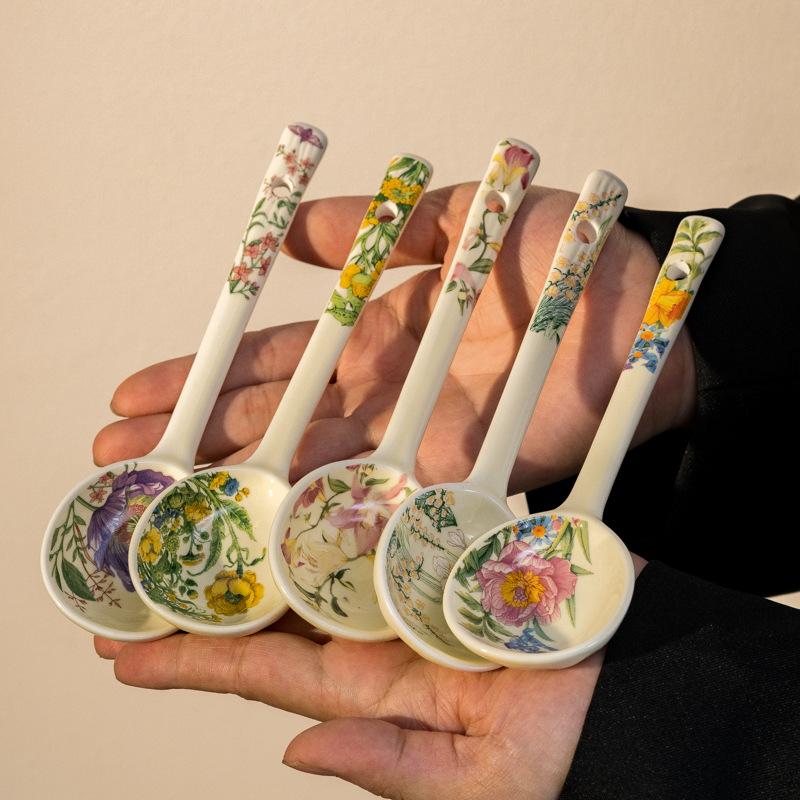 High-value long-handled ceramic spoon, household soup spoon, cute high-value coarse pottery spoon ins wind