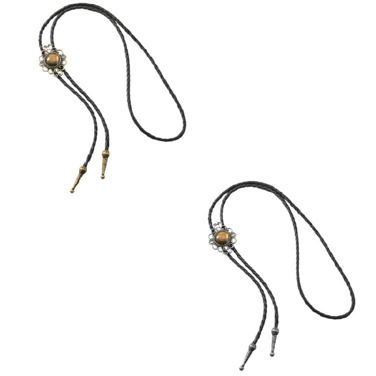 Unisex Southwest Inspired Bolo Tie Necklace Hip Hop Jewelry With Tribal Pendant And Practical PU Leather Metal Chain