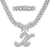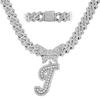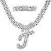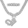 Men Women 14MM Cuban Chain Crystal Butterfly Initials Name Pendant Necklace Iced Out Cursive Letters Rapper Necklace Jewelry New