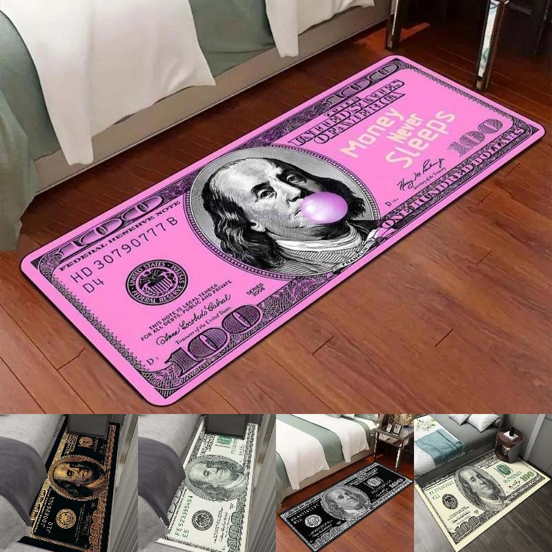 US Dollar Bill Print Carpet - Creative Money Design Floor Mat for Living Room Entrance Foyer Decor with Currency Pattern