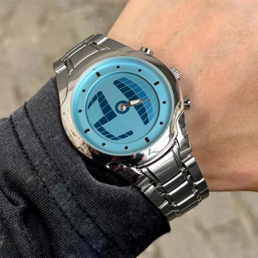 Y2K Alien Quartz Watch Light Blue Pointer Number Dual Display Stainless Steel Original Business Watches Men Dynamic Design Clcok