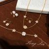 French Retro Four-Leaf Flower Imitation Red Horse Tassel Necklace Five-Flower Bracelet Flower Temperament High-End Light Luxury Set