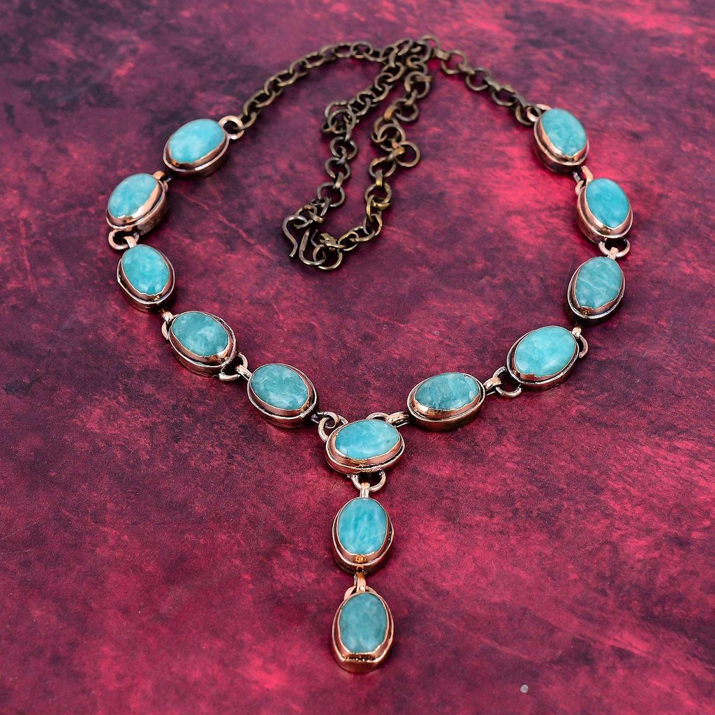 Amazonite Gemstone Necklace Electroformed Copper Adjustable Chain Necklace