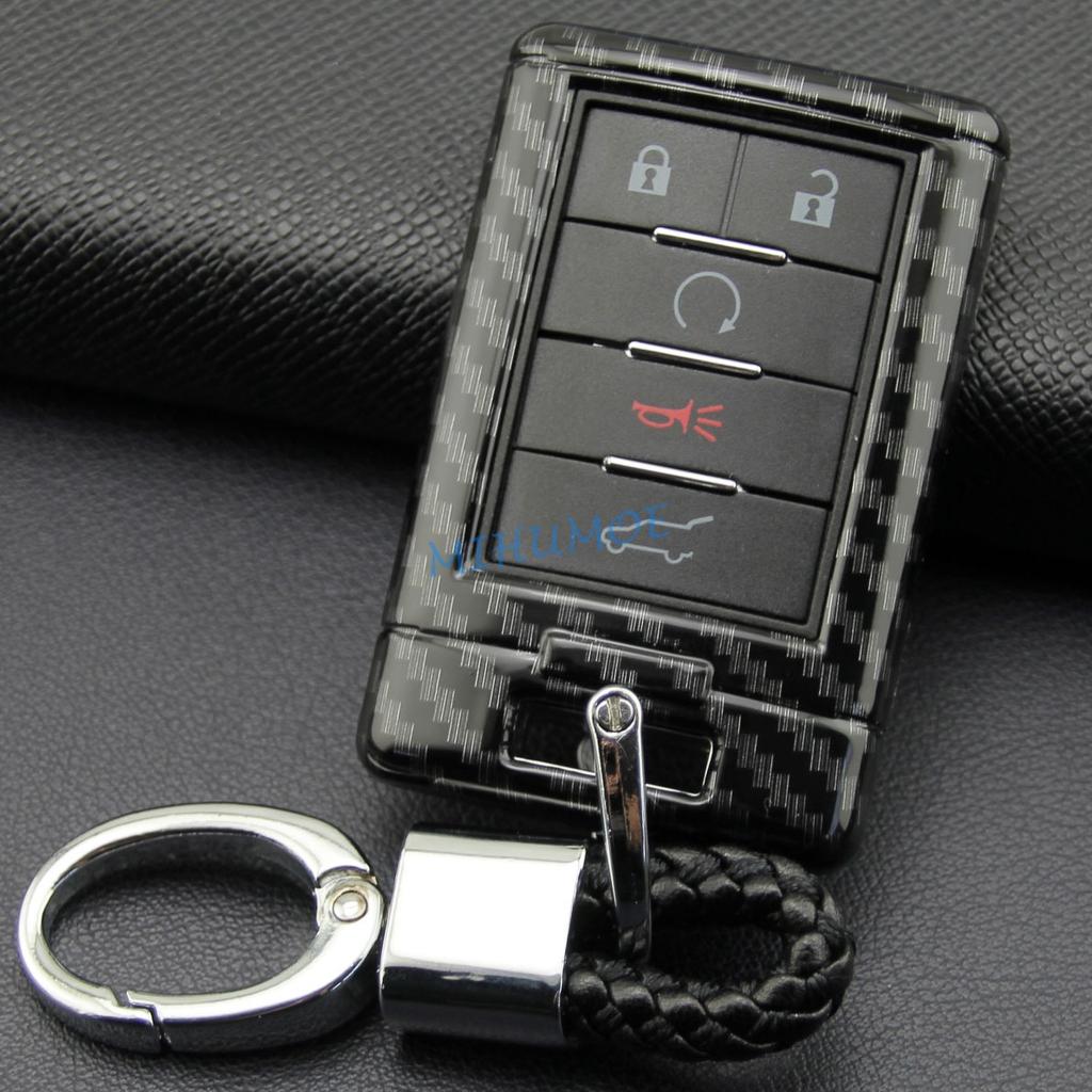 Karbon Fiber Araba Anahtarlık Kapak Kılıf Zincir Halka Tutucu Cadillac DTS STS CTS SRX XTS ATS Corvette