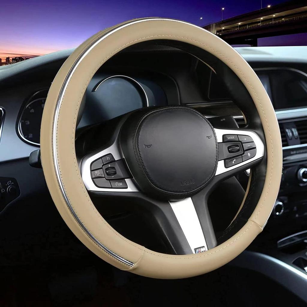 Car Steering Wheel Cover, Microfiber Leather Wheel Cover, Bright Strip Cute Steering Wheel Cover Universal 14.5-15 Inch Car Accessory, Breathable,