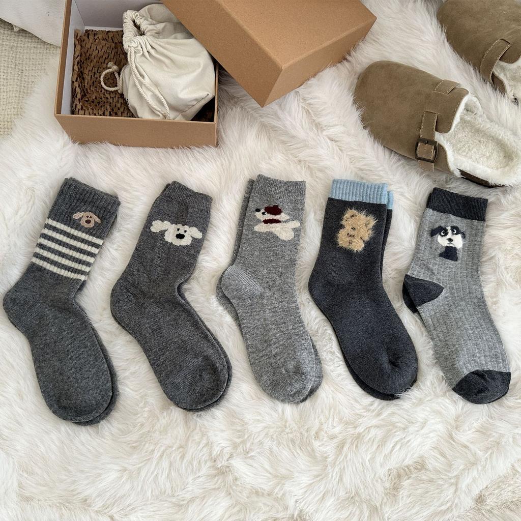 Cartoon Puppy Wool Socks Children Korean Tide Cute Medium Tube Socks Thickened Warm Cashmere Stacking Socks Stockings