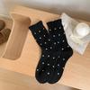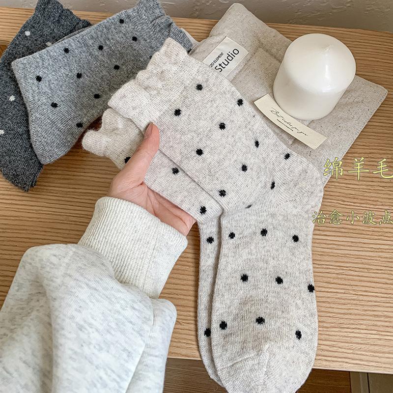 Polka Dot Wool Socks Medium Tube Socks Thickened Cashmere Thermal Stacking Socks White Versatile Double Needle Stockings