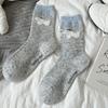 Gray-Blue Wool Socks Children'S Warm Ideas Yarn Twist Medium Tube Socks Fleece Thickened Winter Confinement Socks