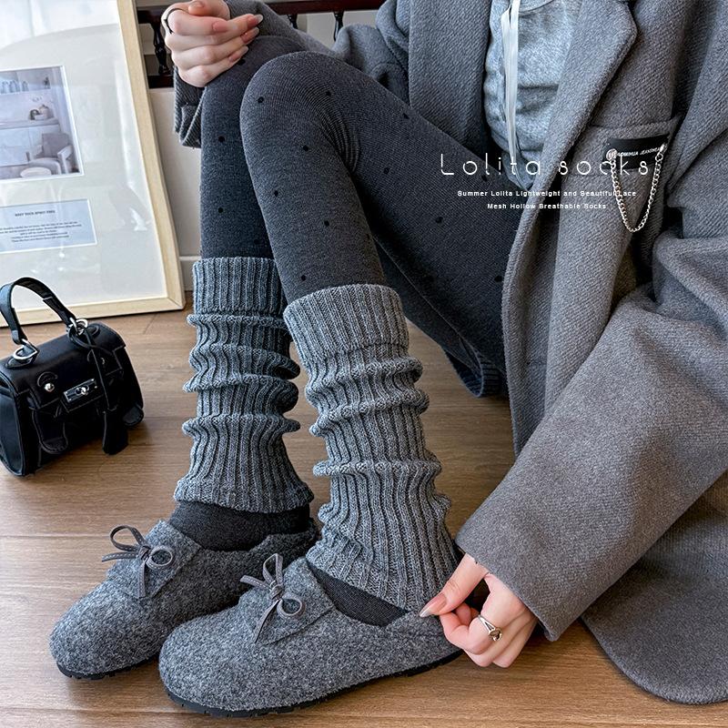 Boots Still Cotton Socks Cover Vertical Strip Small Luo Kou Basic Stacking Socks Knitted Wool Babes Warm Calf Socks