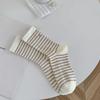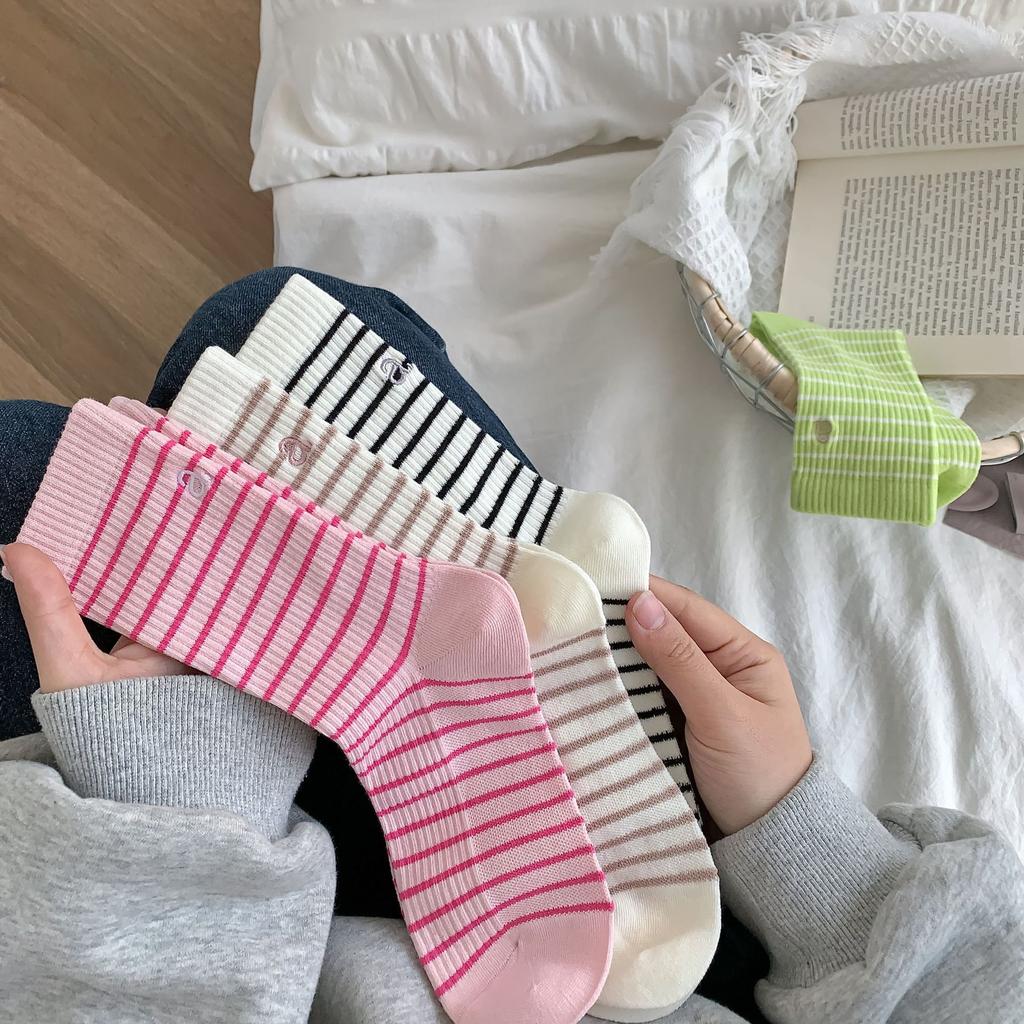 Double Needle Striped Socks Embroidery A Letter Women'S Socks Mid-Tube Socks Trendy Black And White Fashion Stockings Pile Socks Xiaohongshu