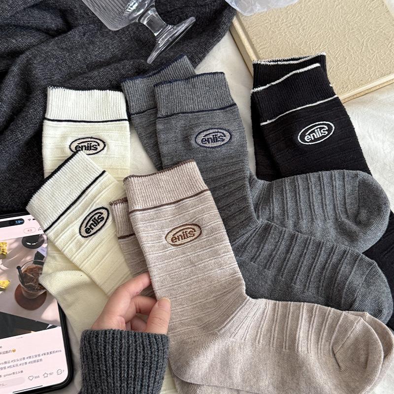 New Socks Korean Embroidered Letter Texture Cotton Mid-Leg Socks Casual Versatile Sports Socks