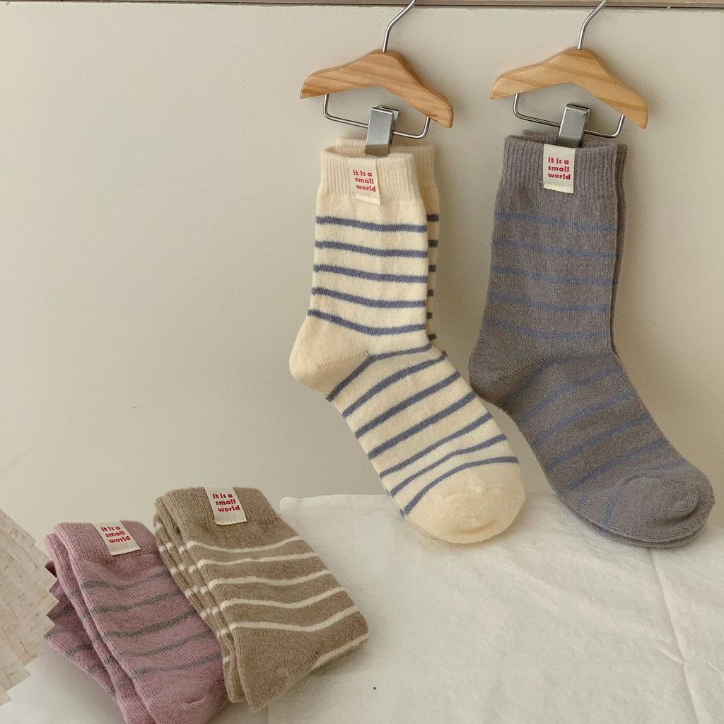 Winter New Products Thickened Cloth Label Color-Blocking Striped Warm Socks Thick Line Contrast Furry Women'S Socks