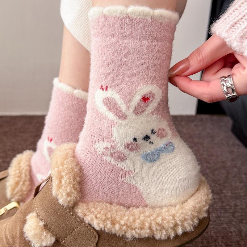 Rabbit Home Cute Girl'S Australian Velvet Socks Sweet Pink Mid-Leg Socks Indoor Versatile Warmth