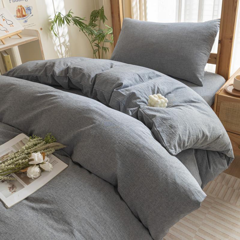Cotton Washed Cotton Single Quilt Cover Student Dormitory Pure Cotton Bedding Four-piece Set Sheet Quilt Cover Simple Three-piece Set