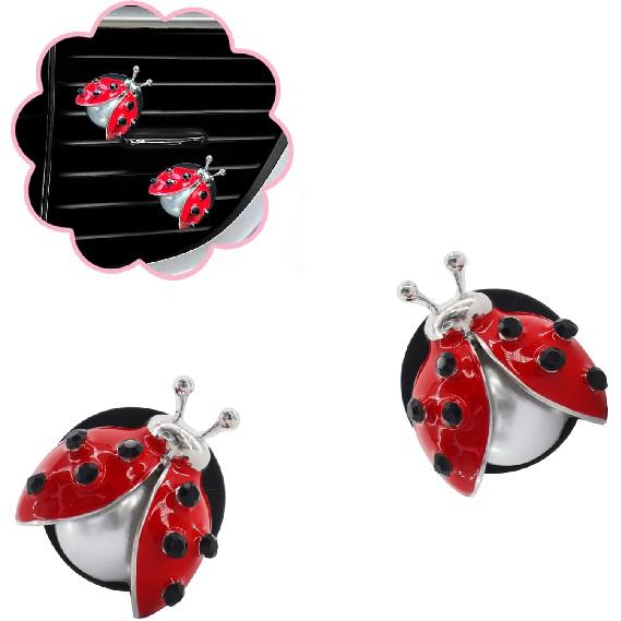 Ladybug Car Accessories,2Pcs Lady Bug Air Vent Clips Car Air Fresheners,Refillable Animal Decoration Diffusers,Girly Rhinestone Dashboard Charms For