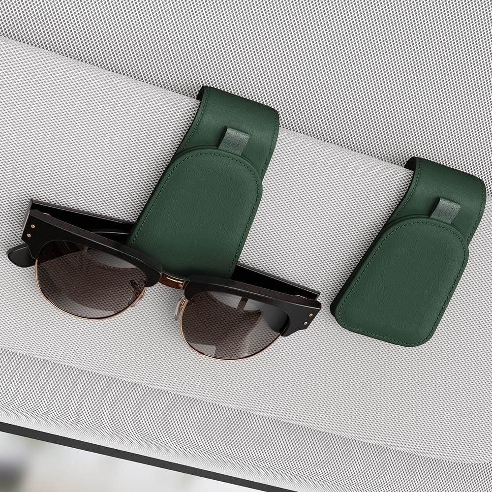 Sotfamily Sunglass Holder For Car Visor, Suede Cloth Magnetic Sunglass Organizer For Car Accessories, 2 Packs, Grass Green