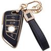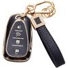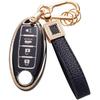 for Toyota Key Fob Cover with Leather Lanyard, Car Key Fob Case Compatible with 2018- Camry RAV4 Highlander Avalon C-HR Prius Corolla GT86 Smart Key