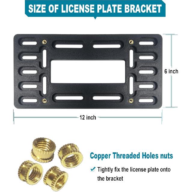 Front License Plate Bracket Holder - Universal Front Mounting Kit, Plastic Bumper Car Tag Adapter With Copper Threaded, With Screws Caps And