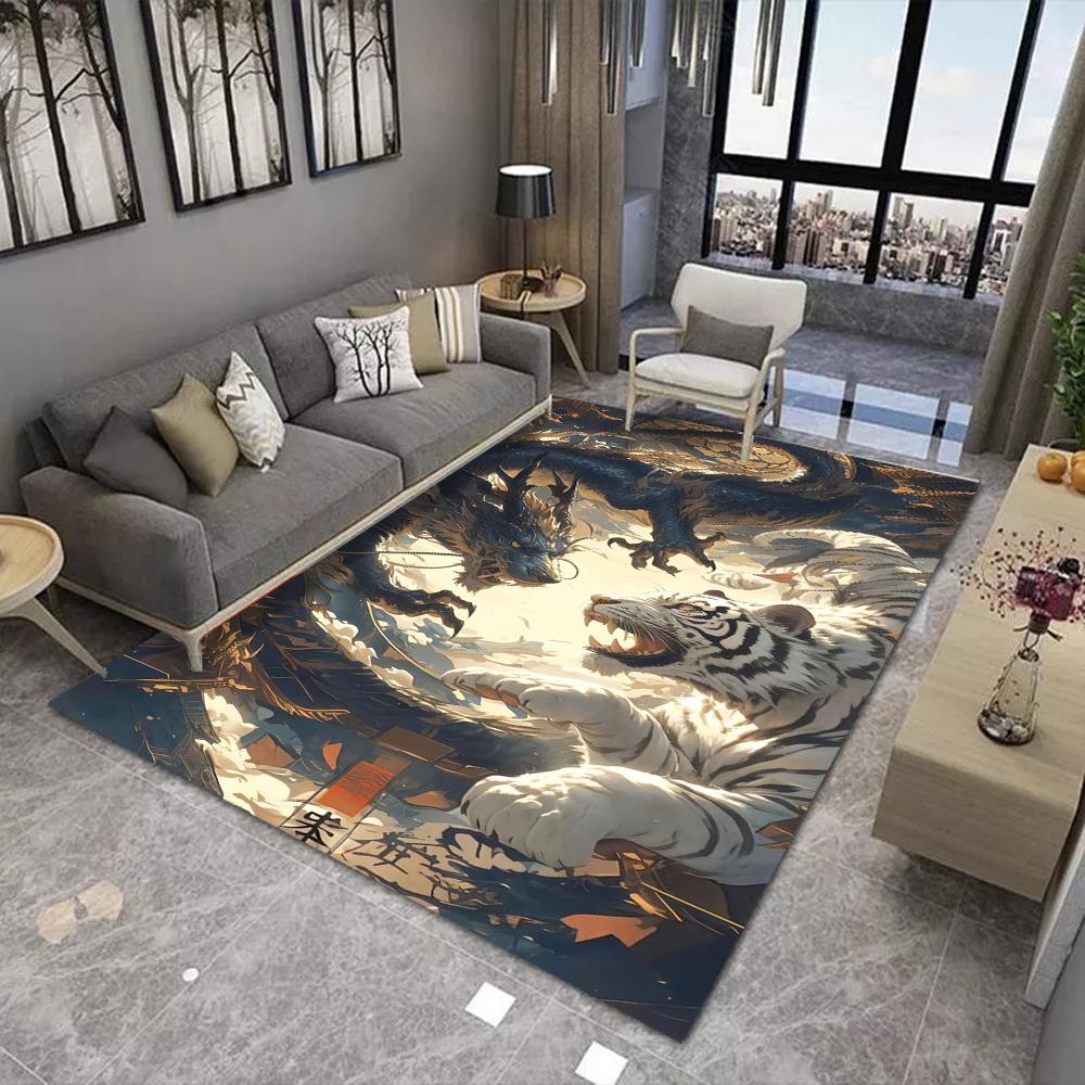 Eastern Mythology Dragon & White Tiger Carpet Chinese Style Power Theme Rug Home Decoration for Living Room Mat Indoor Carpets